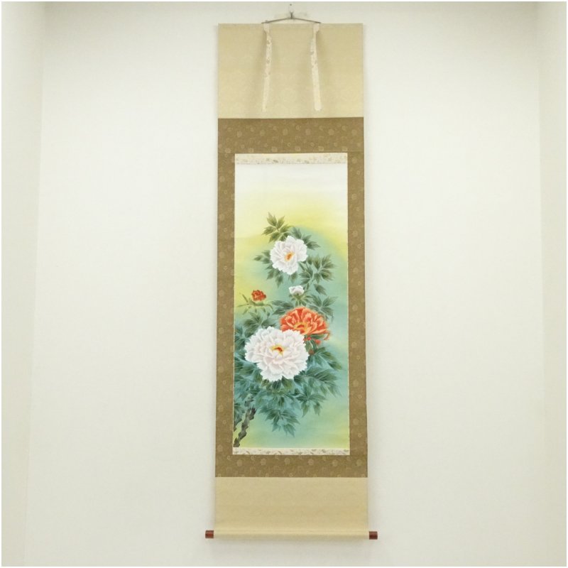 坂本松香筆 牡丹図 肉筆絹本掛軸(共箱) [01-250725c-076a]