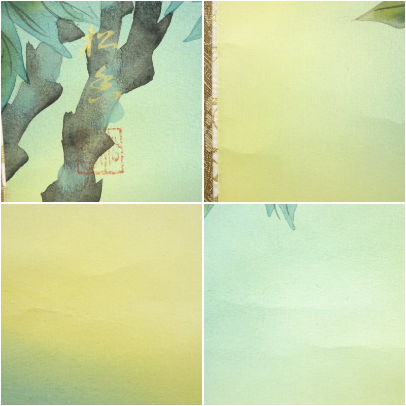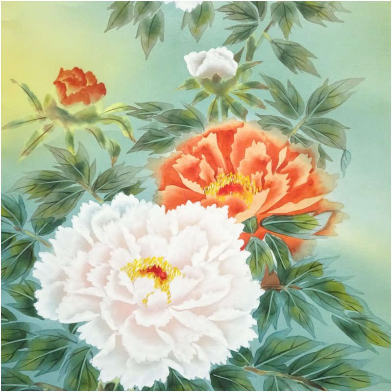 坂本松香筆 牡丹図 肉筆絹本掛軸(共箱)