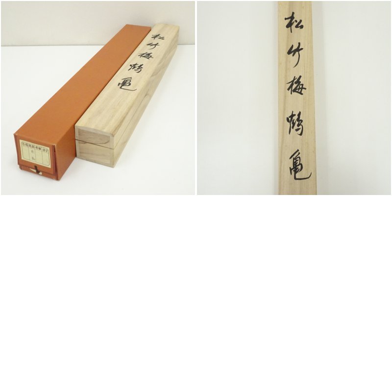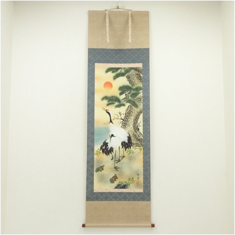 珠香筆 松竹梅鶴亀 肉筆絹本掛軸(共箱) [01-250725c-078a]