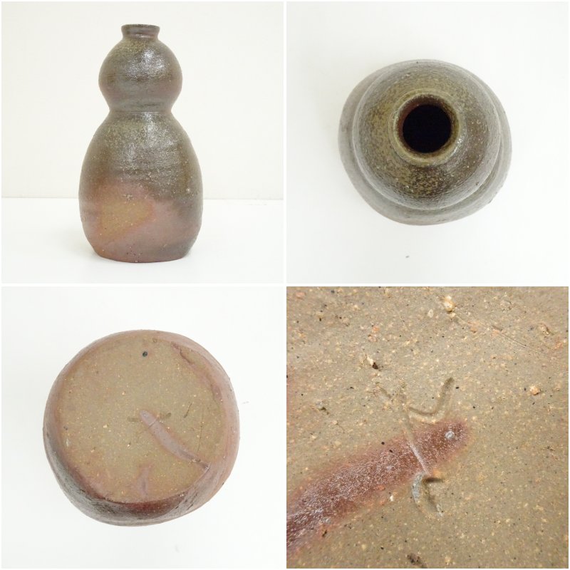 備前焼 末石泰節造 瓢型花器(共箱)