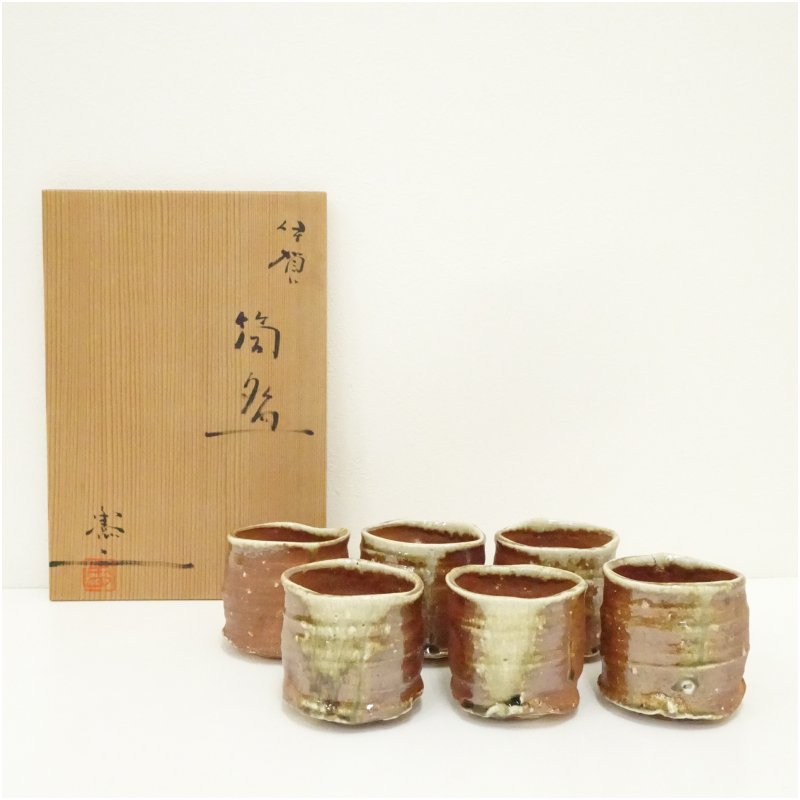 伊賀焼 小島憲二造 筒碗6客(共箱) [13-250728c-019a]