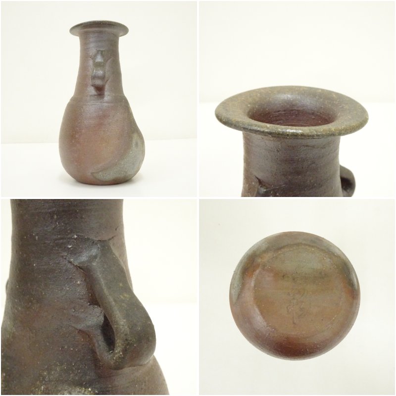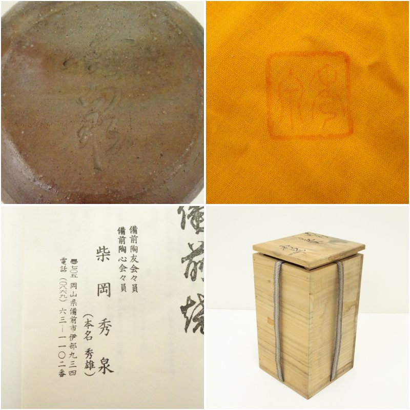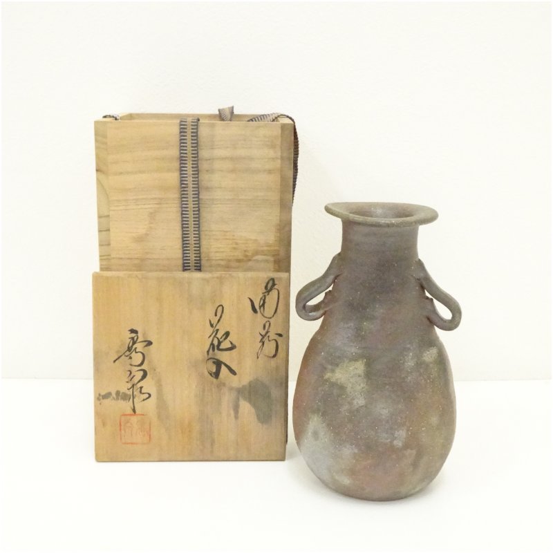 備前焼 柴岡秀泉造 花入(共箱) [13-250730c-001a]