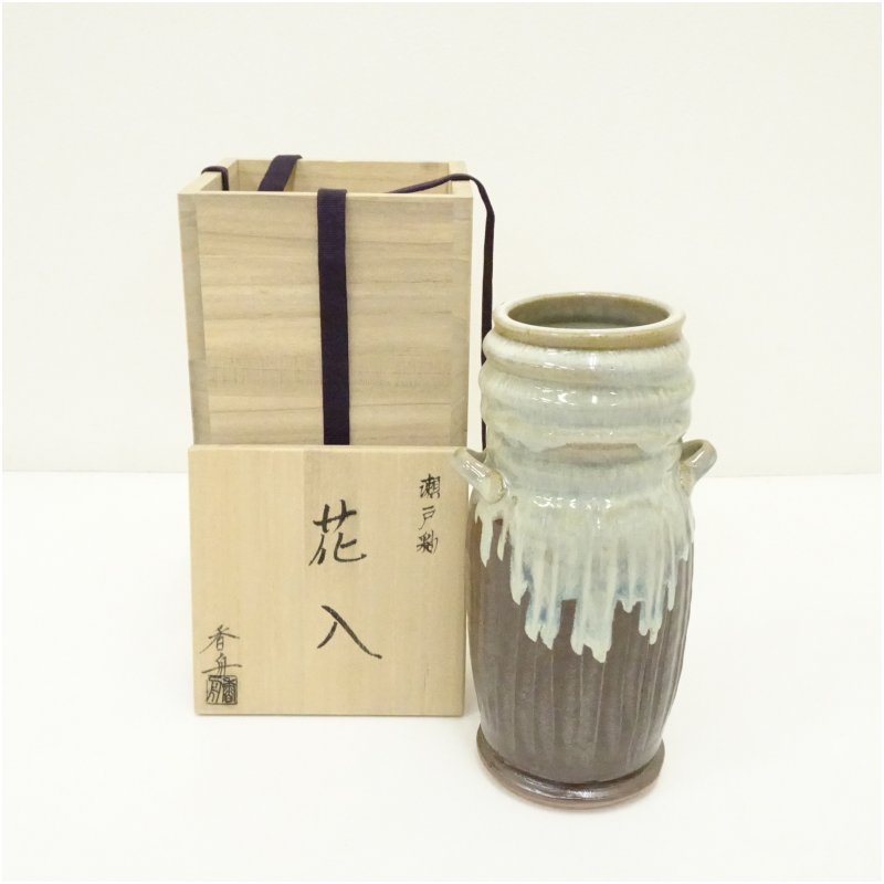 西尾香舟造 瀬戸釉花入(共箱) [13-250730c-009a]
