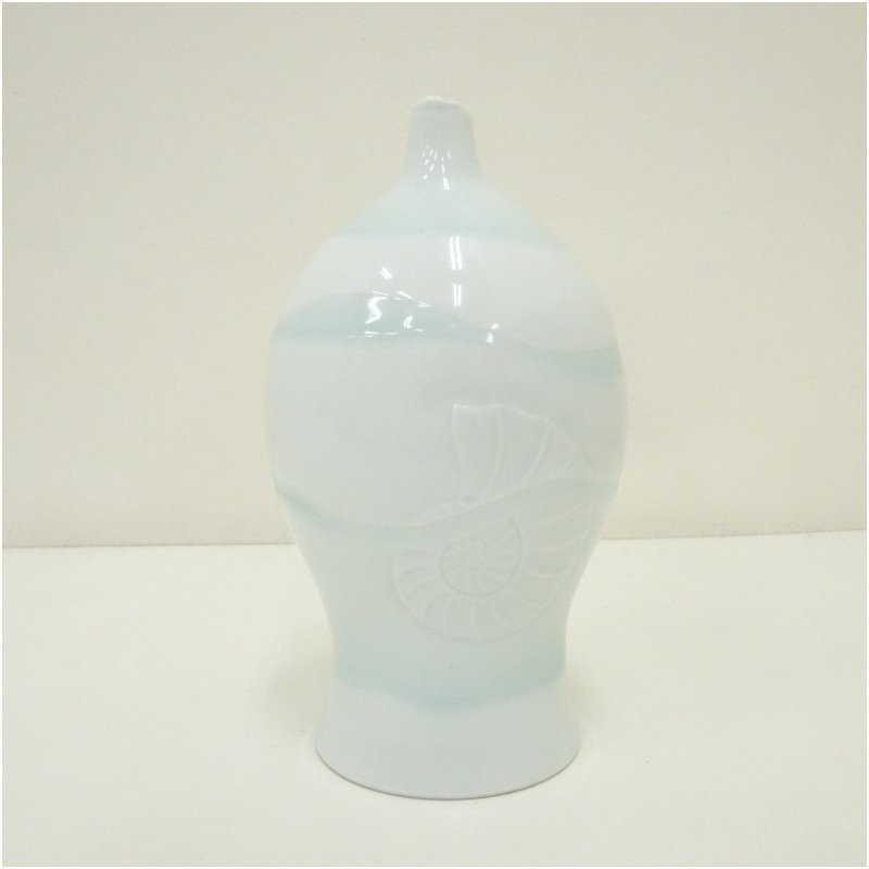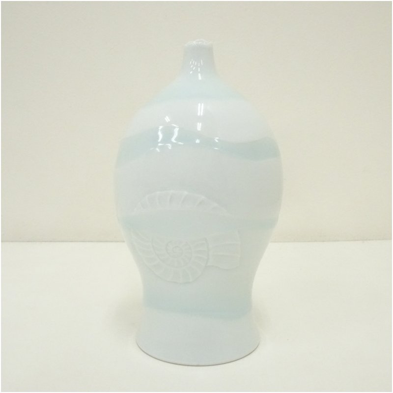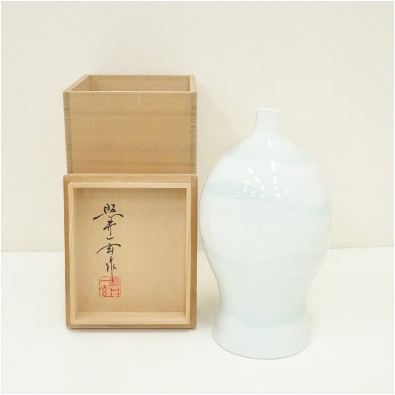 岳窯 照井一玄造 青白磁扁壷(銘:水の中)(共箱)