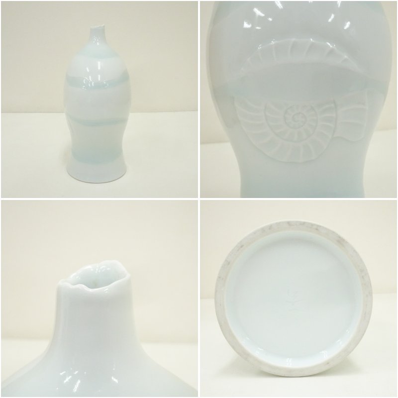 岳窯 照井一玄造 青白磁扁壷(銘:水の中)(共箱) [13-250730c-010a]