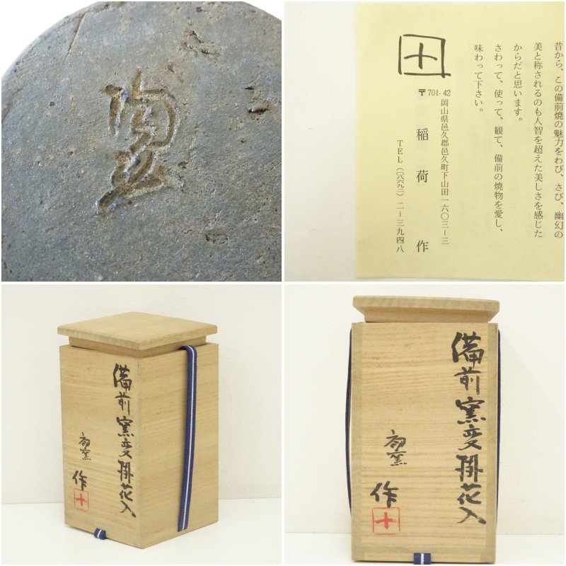 備前焼 稲荷作造 窯変掛花入(共箱) [13-250731c-006a]