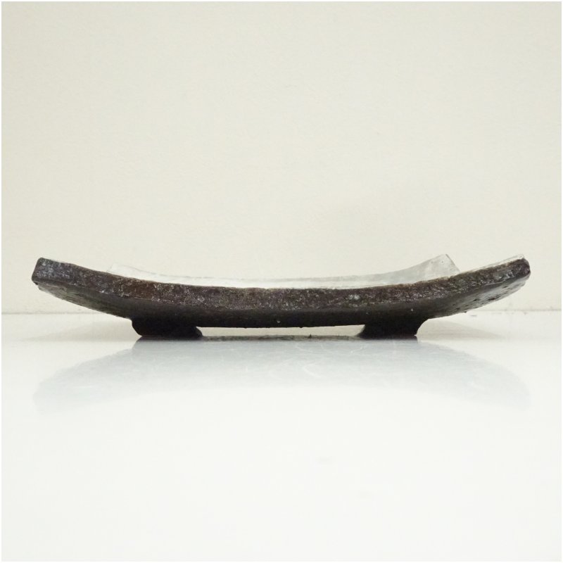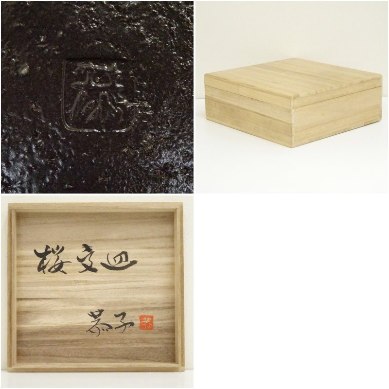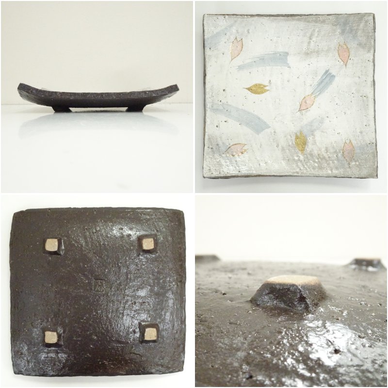 益子焼 島田恭子造 桜文角皿(共箱) [13-250731c-047a]