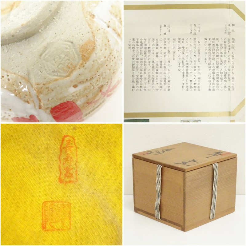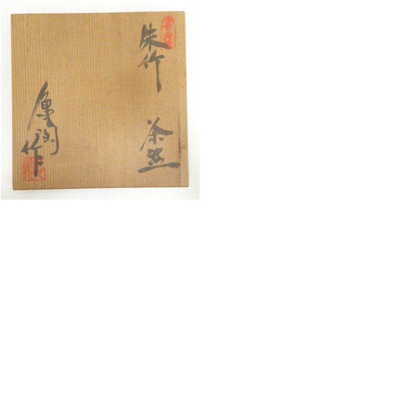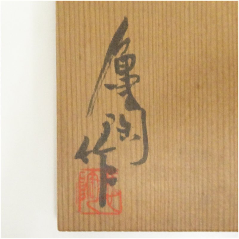 長寿窯 中島亀陶(中島亀男)造 朱竹茶碗(共箱)