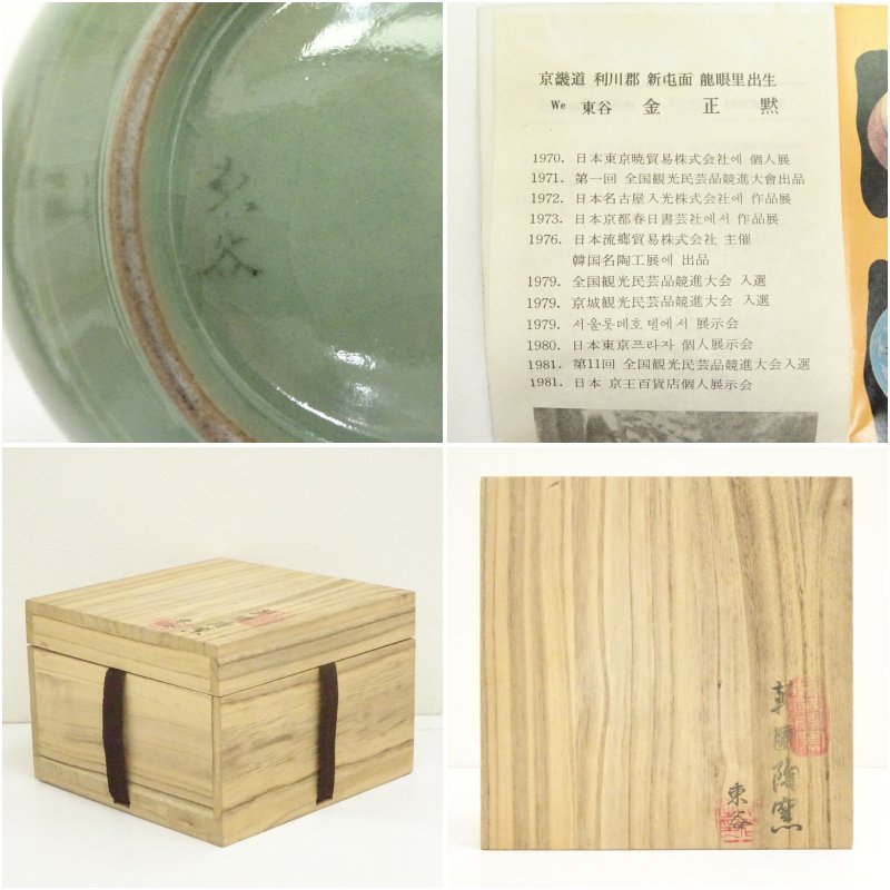 韓国陶窯 東谷 金正黙造 高麗青磁茶碗(共箱)