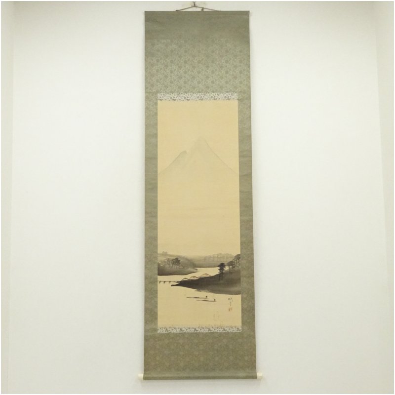成章筆 山水図 肉筆絹本掛軸(保護箱) [01-250731c-083a]
