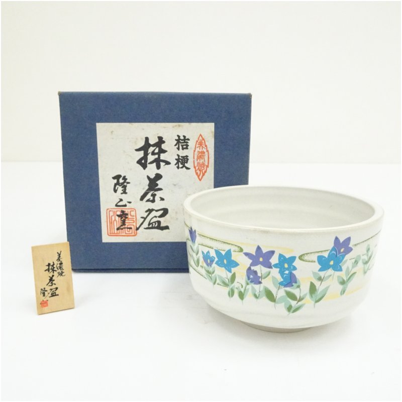 美濃焼 隆正窯 隆山造 色絵桔梗茶碗(箱付)