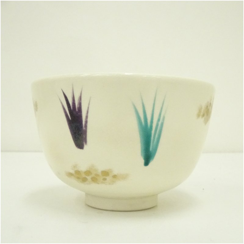 京焼 蔭山良斎造 色絵草文茶碗(箱付) [01-250801c-020a]