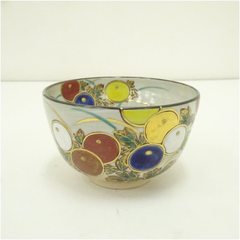 京焼 鳴滝窯 橋本城岳造 刷毛目万寿菊文茶碗(共箱) [01-250801c-048a]