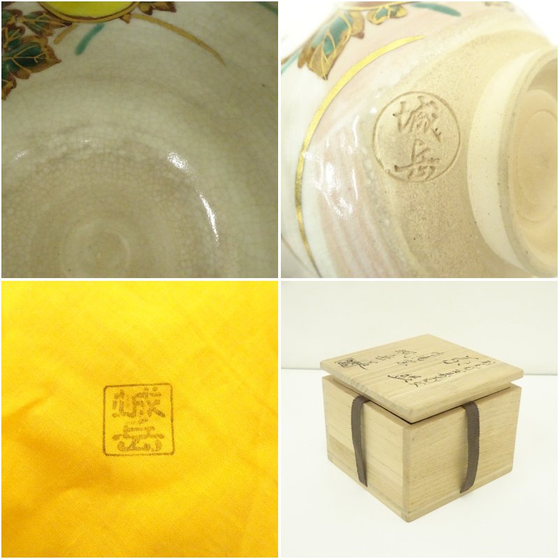 京焼 鳴滝窯 橋本城岳造 刷毛目万寿菊文茶碗(共箱)