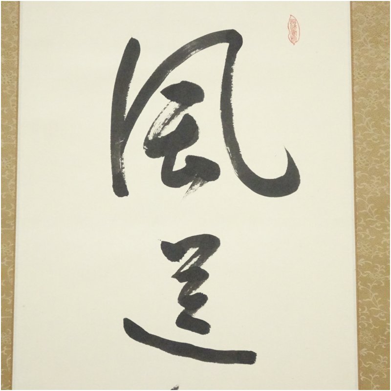 大阿闍梨 光永澄道筆 「風送泉聲来」一行書 肉筆紙本掛軸(共箱) [14-250801c-054a]