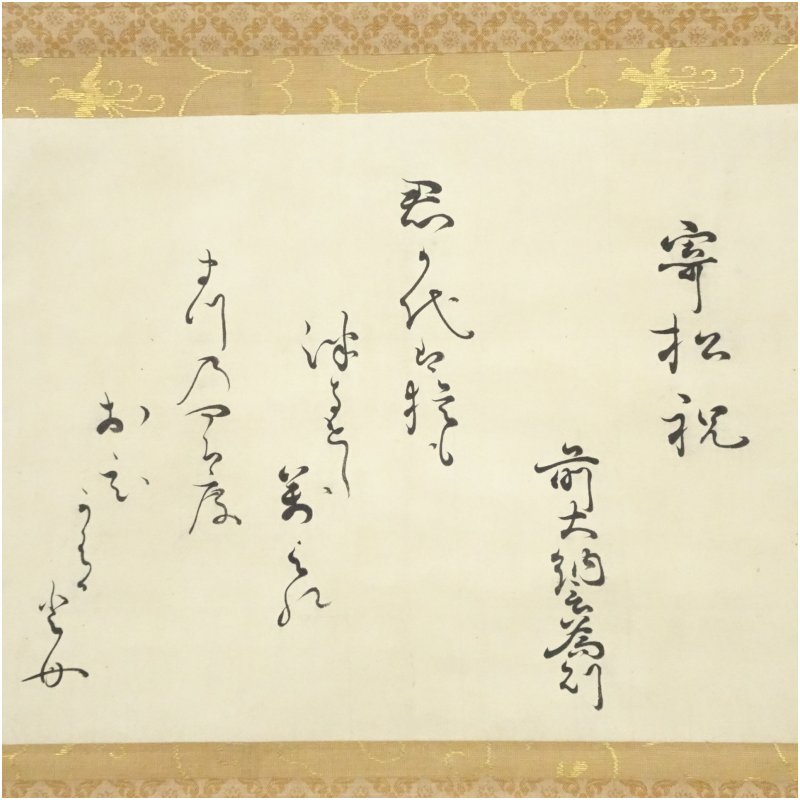 江戸後期 冷泉為則筆 寄松祝 和歌 肉筆紙本掛軸(共箱) [14-250804c-004b]