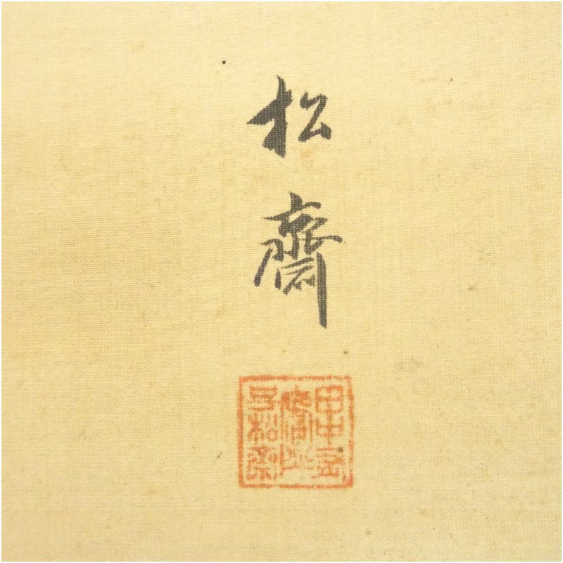 明治期 田中松斎筆 旭日 肉筆絹本掛軸(共箱)