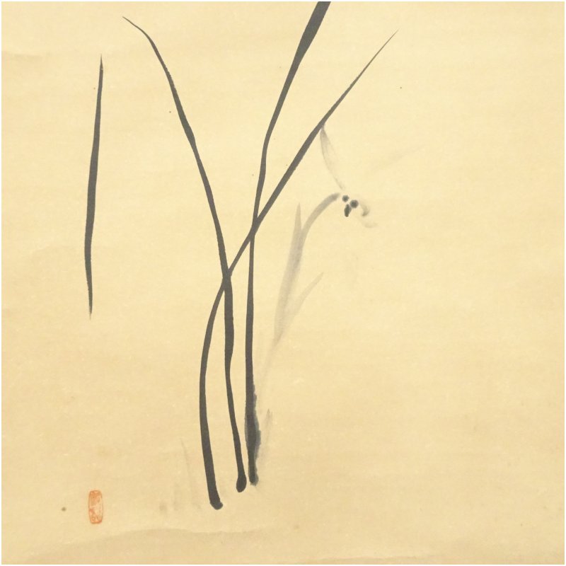 円福寺 井沢寛州(泥龍窟)筆 蘭図 肉筆紙本掛軸(共箱)
