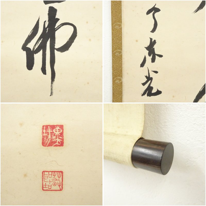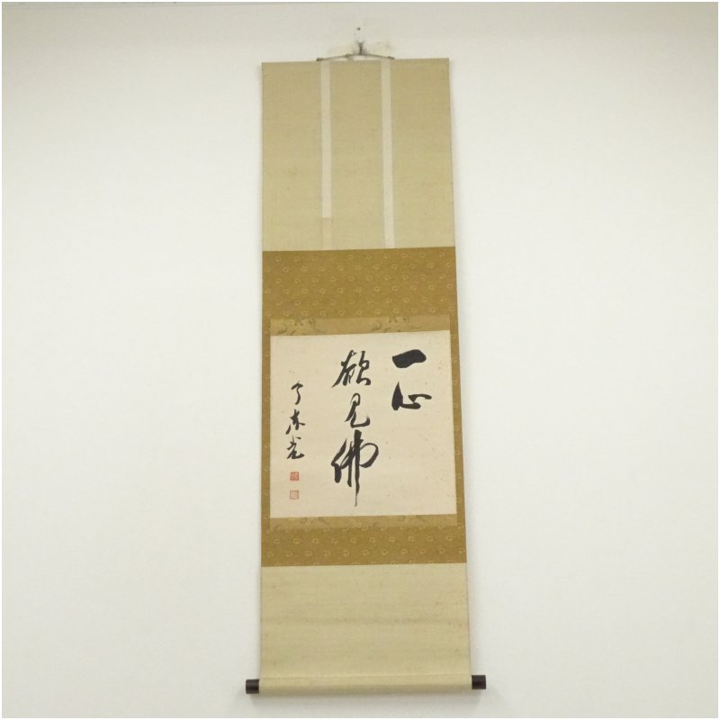 1970年 今東光筆 「一心観見佛」 肉筆色紙掛軸(共箱) [14-250804c-019a]