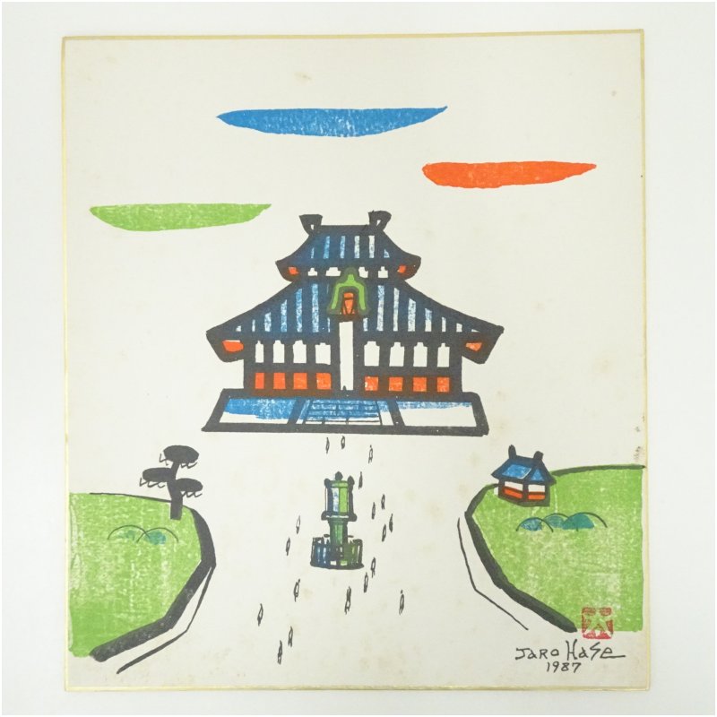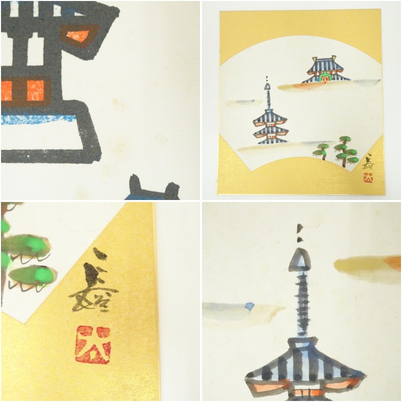 長谷太郎筆 大仏殿風景図 肉筆色紙2点 [13-250804c-048a]