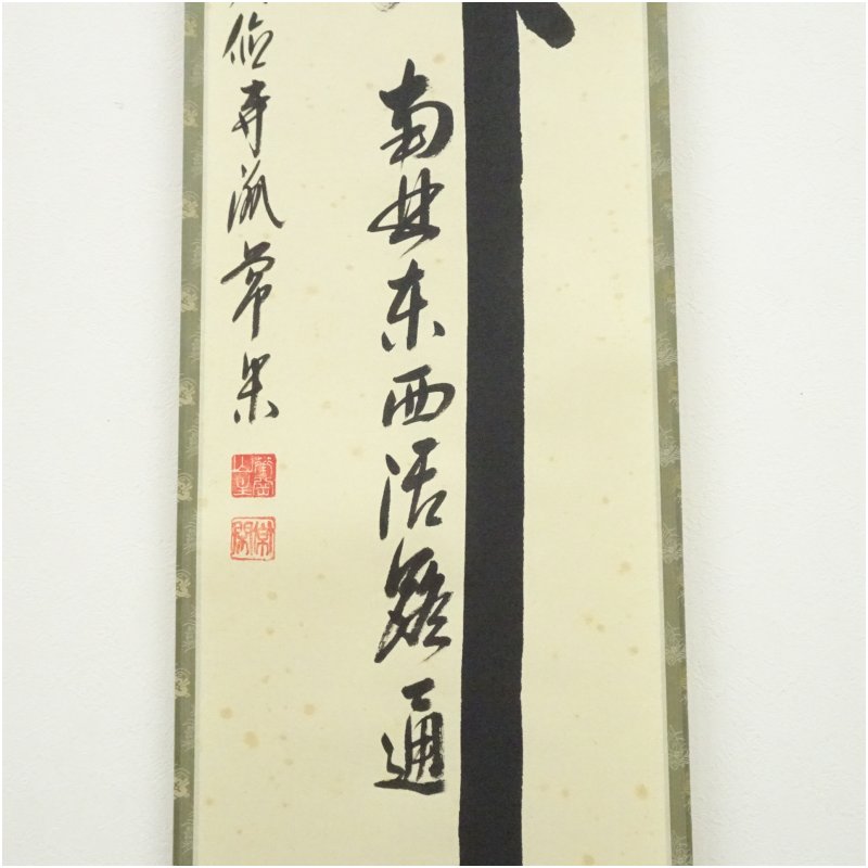 大徳寺派 辻常閑筆 「関南北東西活路通」一行書 肉筆紙本掛軸(共箱) [13-250804c-049a]