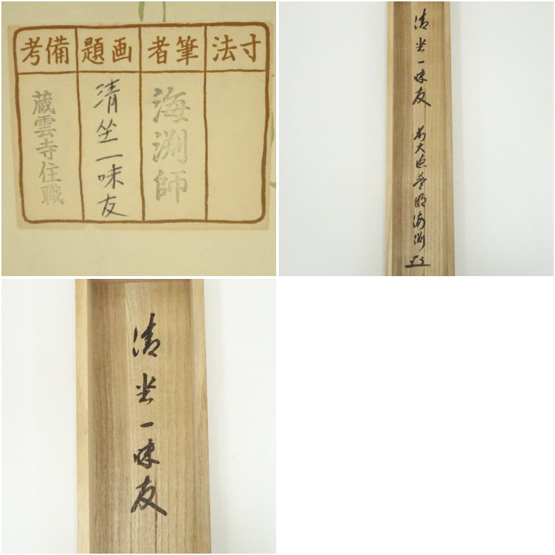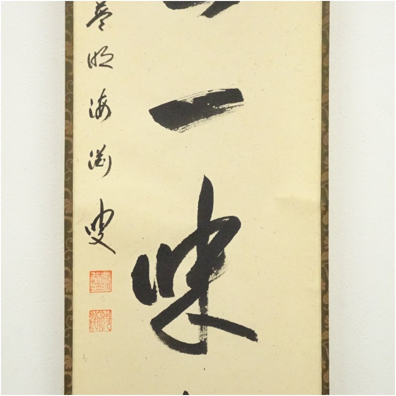 前大徳 矢野一甫(海渕)筆 「清坐一味友」一行書 肉筆紙本掛軸(共箱) [13-250805c-013a]