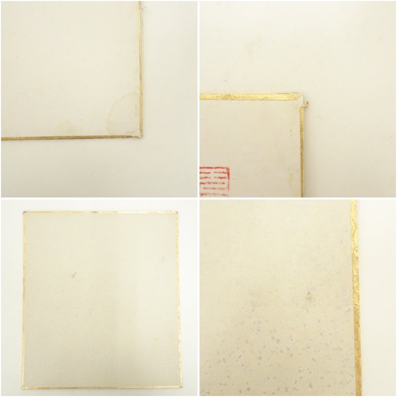うち1枚の裏面に汚れがあります。もう1枚の縁と角に破れと折れがあります。