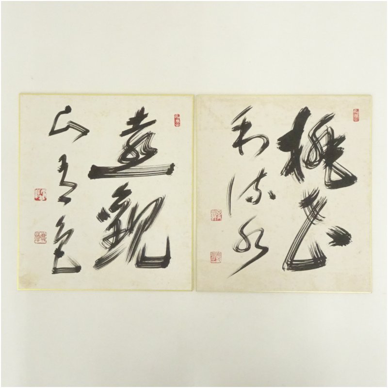 東福寺 福島慶道(更幽軒)筆 肉筆色紙2点 [13-250805c-022a]