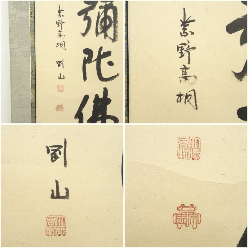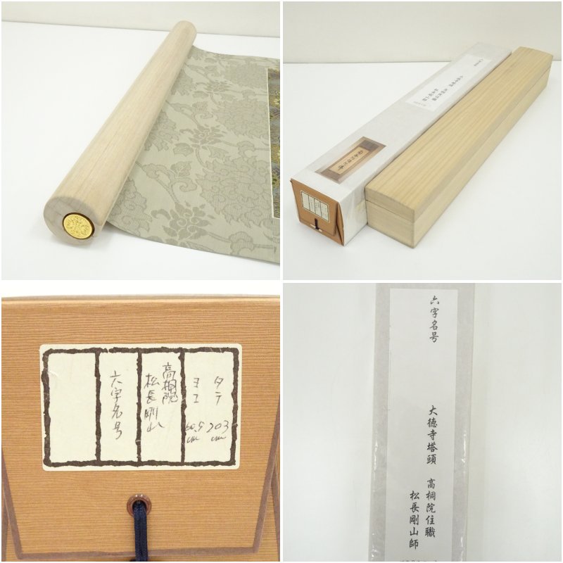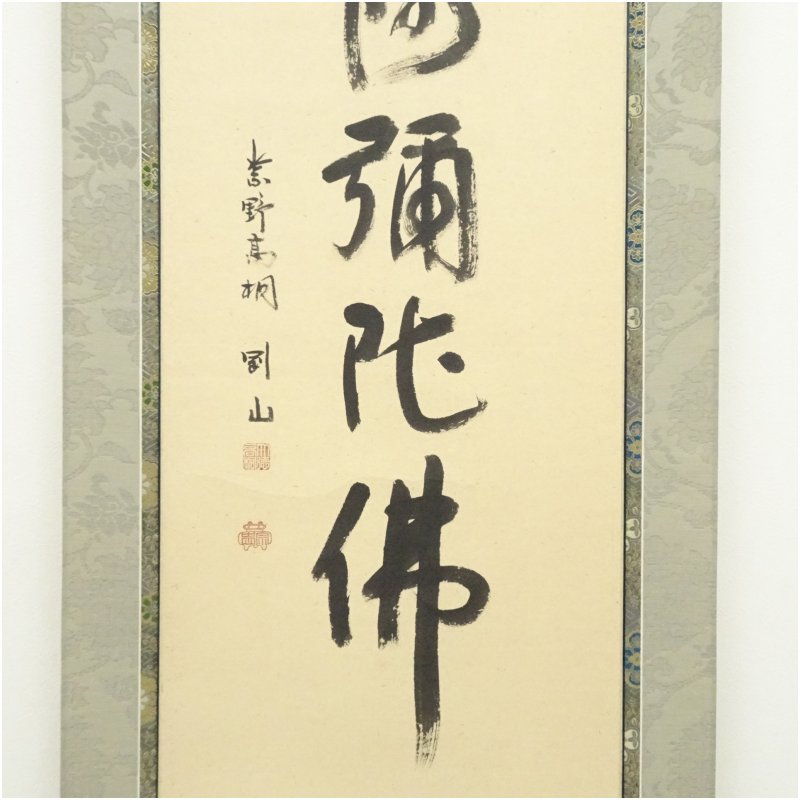大徳寺 松長剛山筆 六字名号 太巻 肉筆紙本掛軸(共箱)