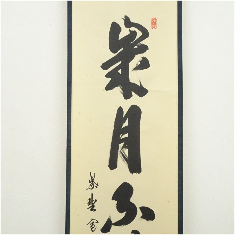 大徳寺 長谷川寛州筆 「歳月不待人」一行書 肉筆紙本掛軸(共箱)