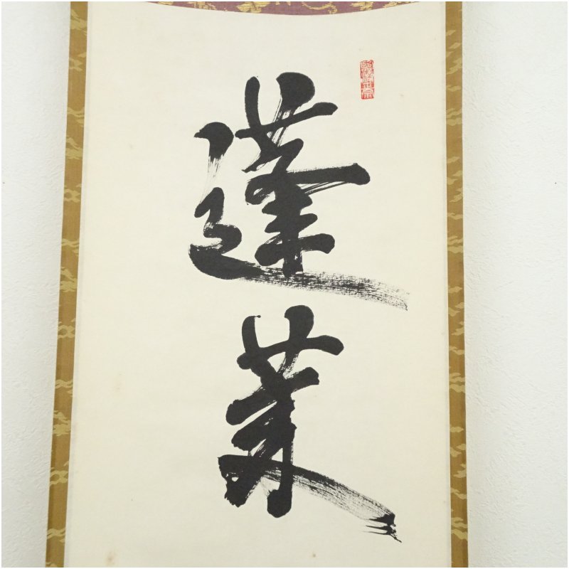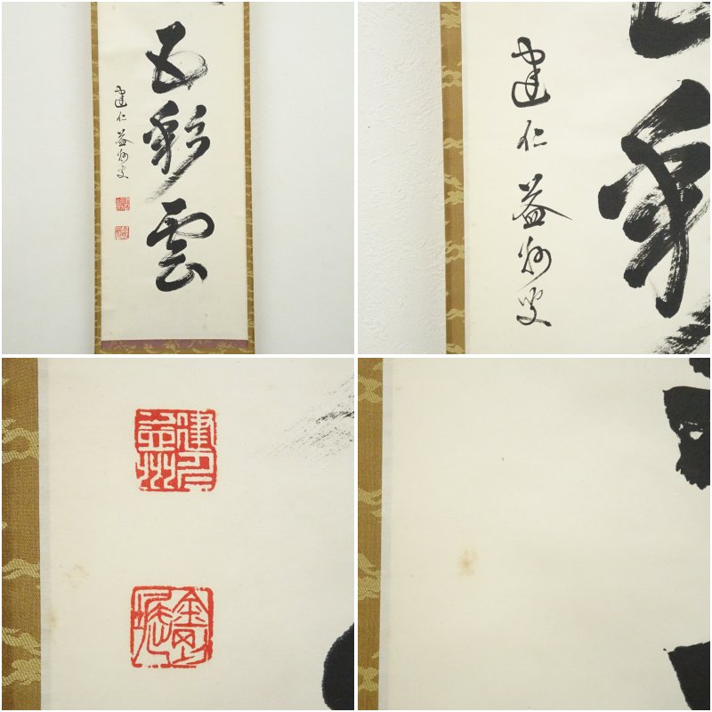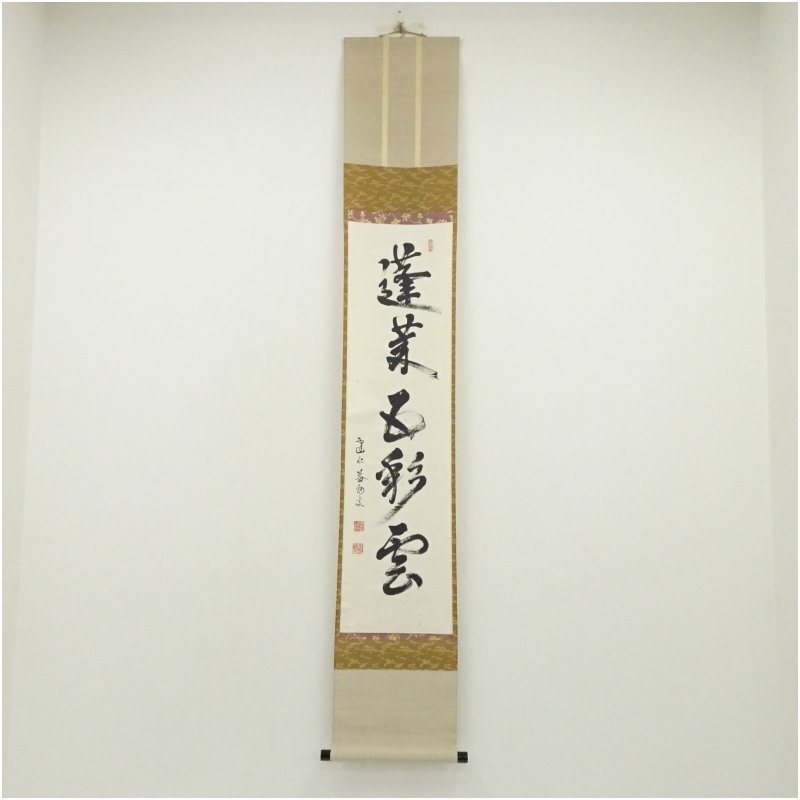 建仁寺 竹田益州筆 「蓬莱五彩雲」一行書 肉筆紙本掛軸(共箱) [13-250806c-004a]