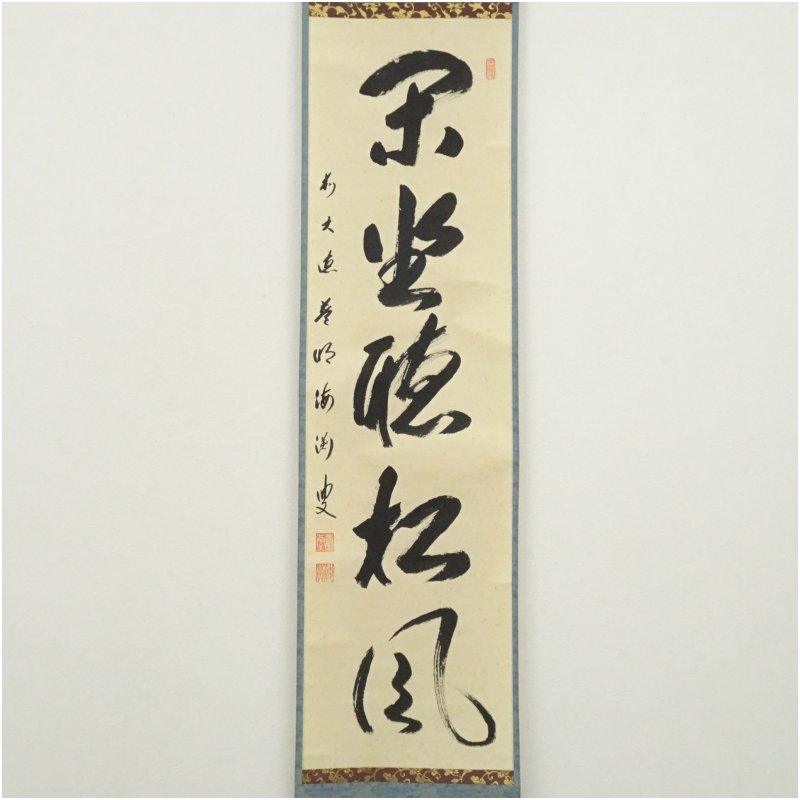 前大徳 矢野海渕筆 「閑坐聴松風」一行書 肉筆紙本掛軸(共箱) [13-250806c-012a]