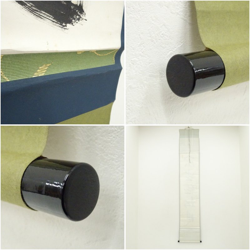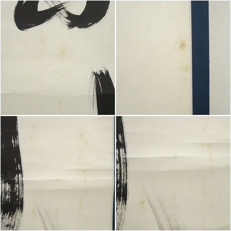 本紙と表具裏面に、全体的に薄いシミと巻き皺による折れがあります。