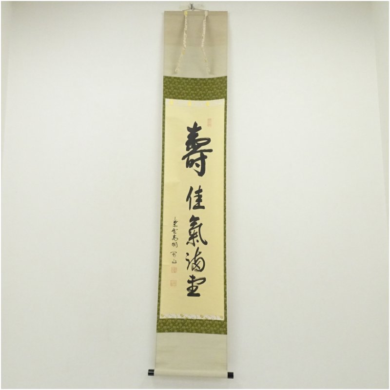 大徳寺 松長剛山筆 「寿佳気満堂」 肉筆紙本掛軸(共箱) [13-250807c-010a]