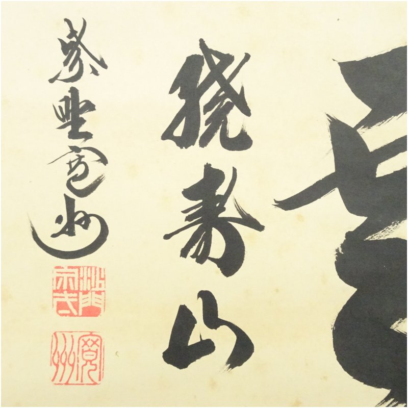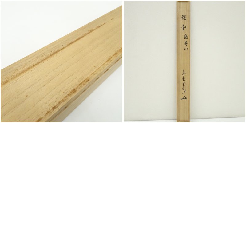 大徳寺 長谷川寛州筆 「瑞雲繞寿山」横物 肉筆紙本掛軸(共箱)