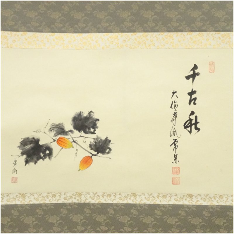 大徳寺派 辻常閑筆 「千古秋」画賛 肉筆紙本掛軸(共箱) [13-250807c-022a]