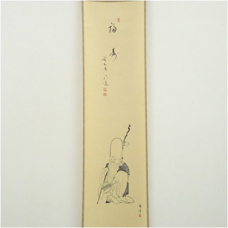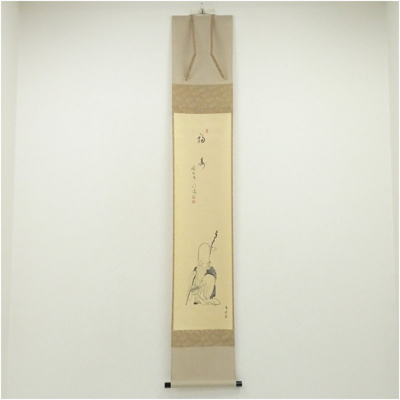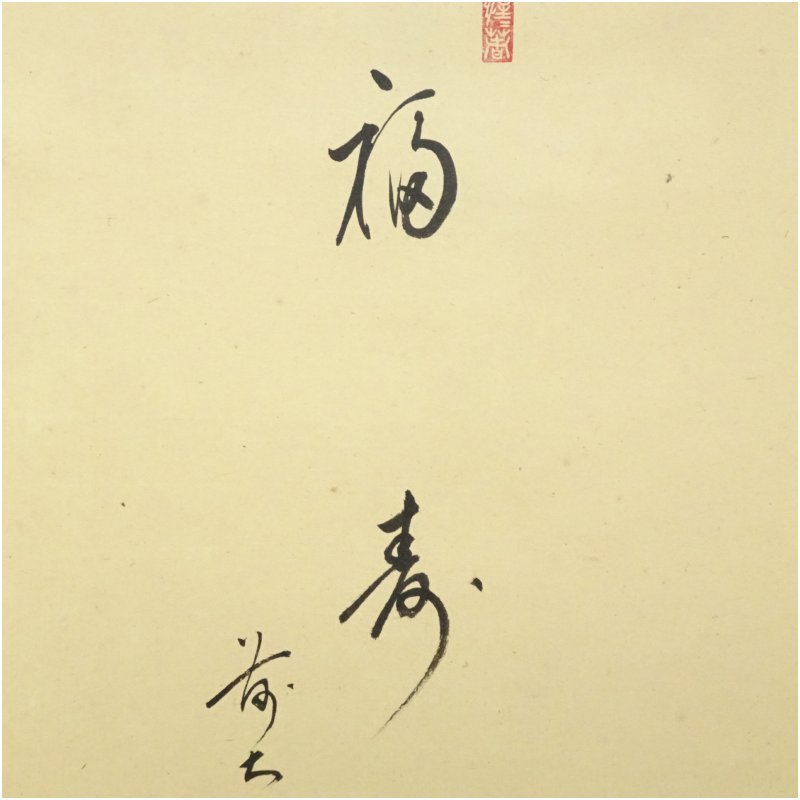 前大徳 戸上明道筆 「福寿」画賛 肉筆紙本掛軸(共箱) [13-250807c-035a]