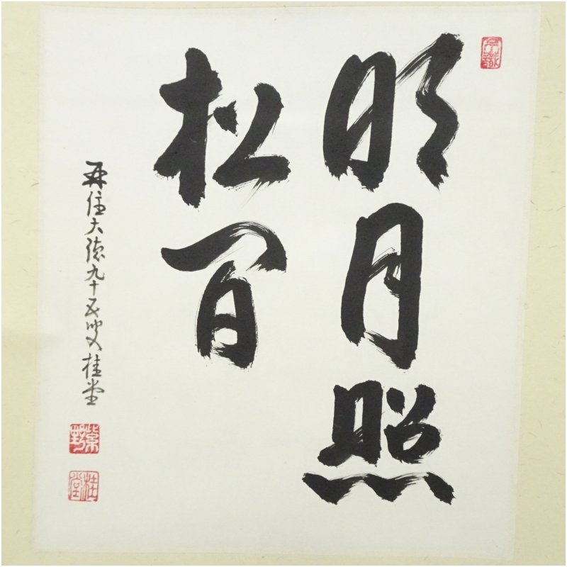 大徳寺 吉口桂堂筆 「明月照松間」 肉筆紙本掛軸(保護箱)