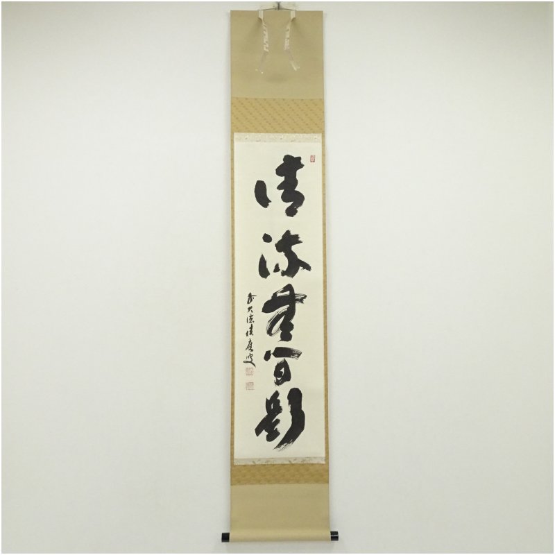 前大徳 福本積應筆 「清流無間断」一行書 肉筆紙本掛軸(共箱) [13-250807c-047a]