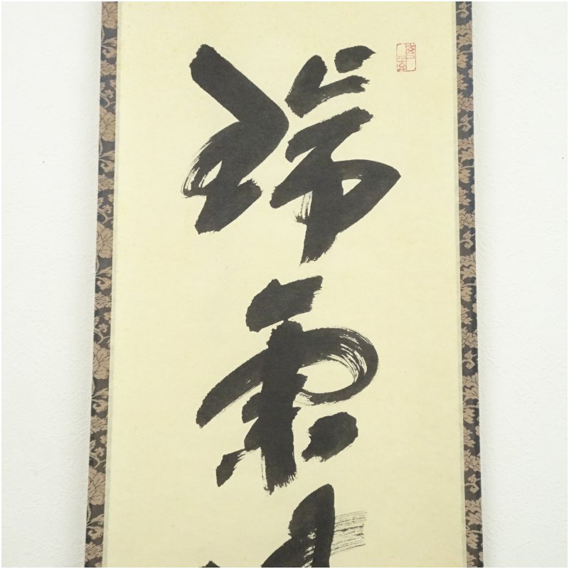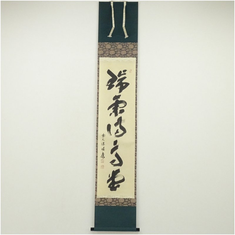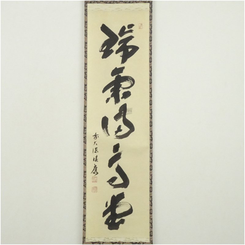 前大徳 福本積應筆 「瑞気満高堂」一行書 肉筆紙本掛軸(共箱) [13-250813c-011a]