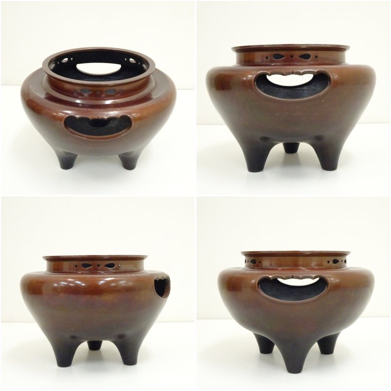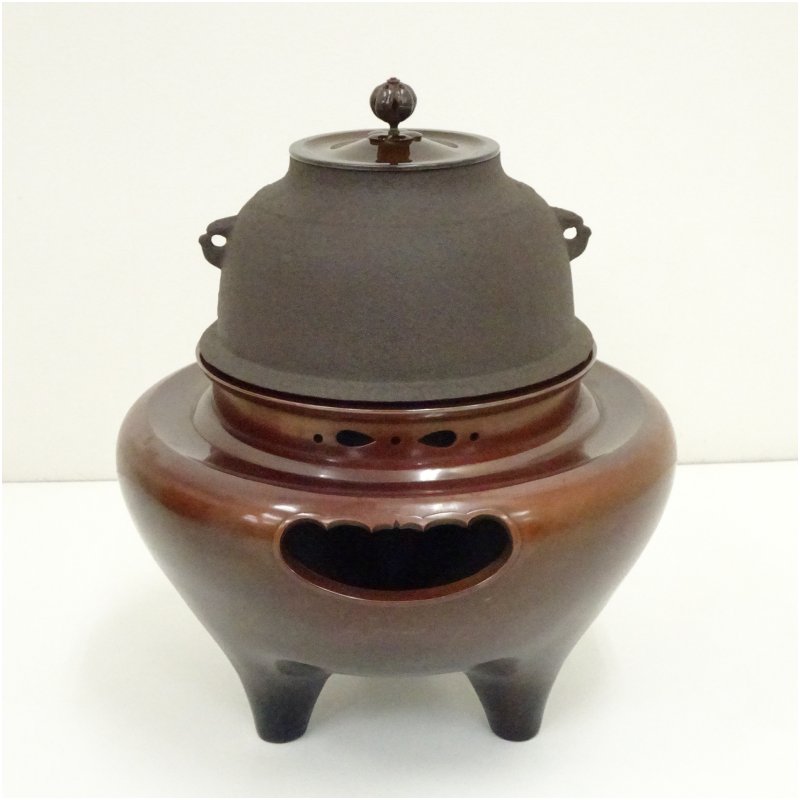 釜師 金森紹栄造 唐銅風炉 真形釜添(釜鐶付)(保護箱)
