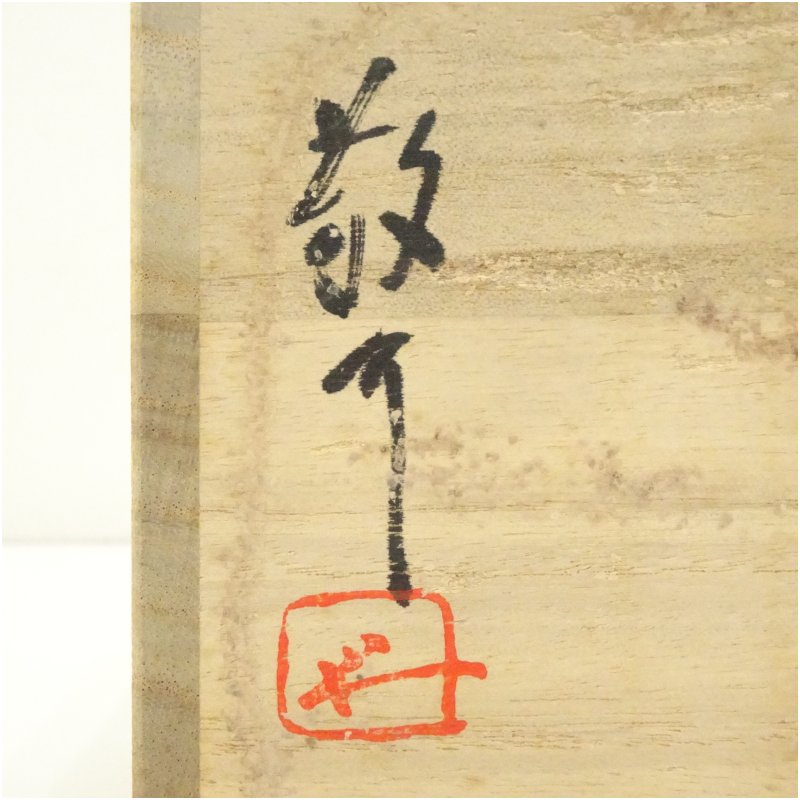 木箱の側面にシミとテープ跡があります。底部に虫食いがあります。