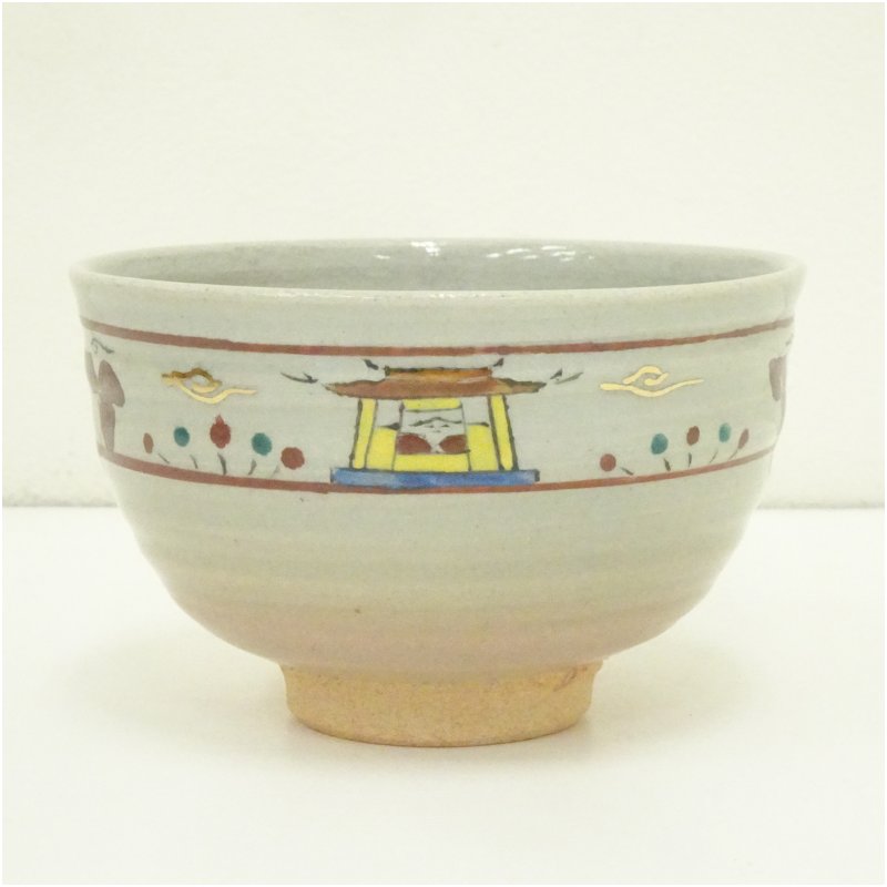 赤膚焼 武田高明造 奈良絵茶碗(共箱) [13-250813c-027a]