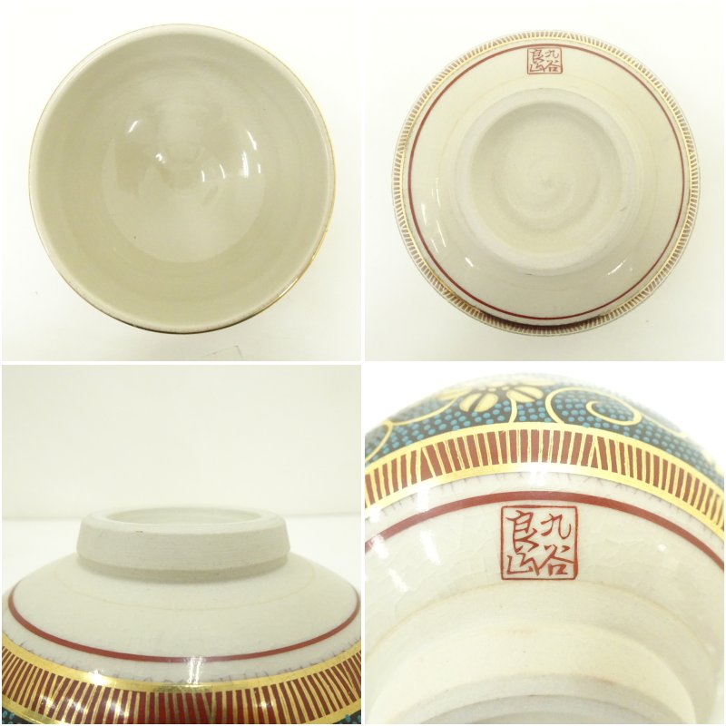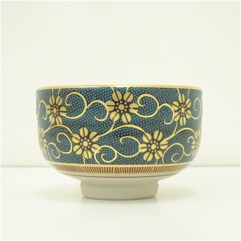 九谷焼 良山造 青粒鉄仙茶碗(共箱)