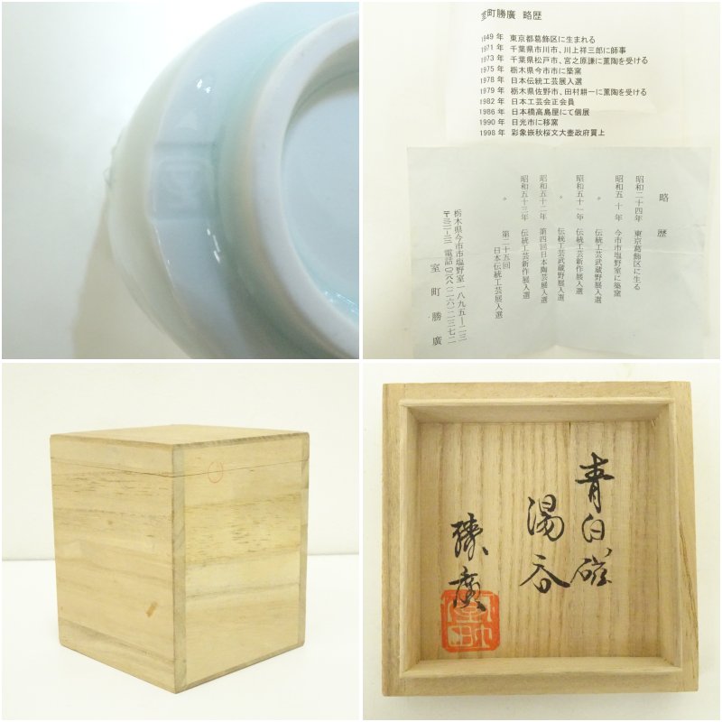 室町勝廣造 青白磁湯呑(共箱) [13-250813c-055a]