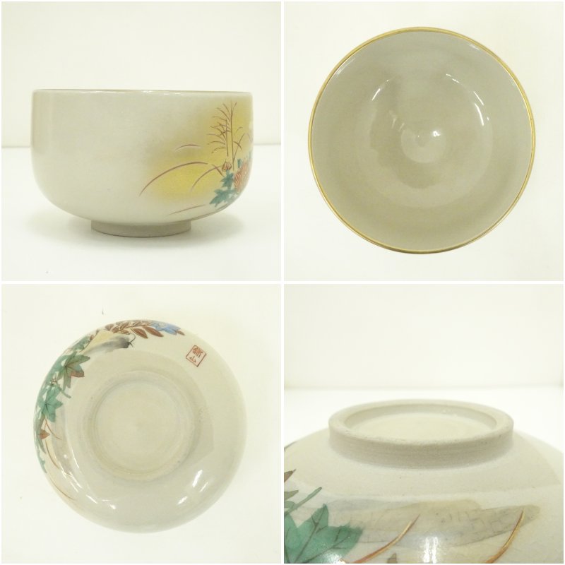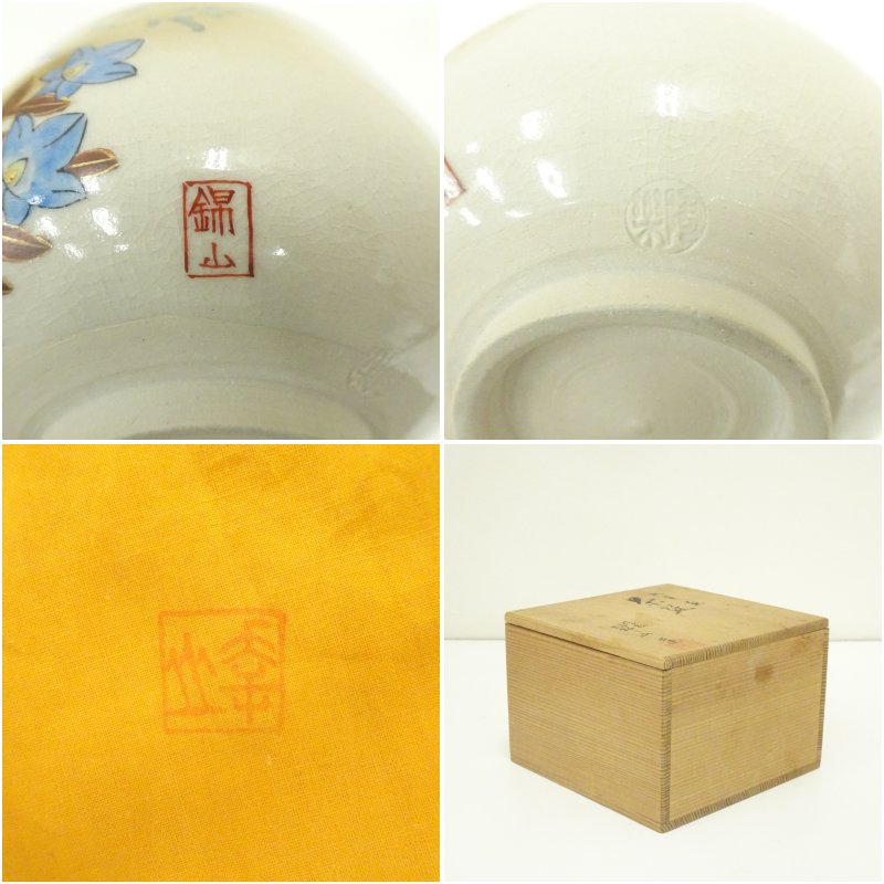 九谷焼 錦山造 秋草画茶碗(共箱)