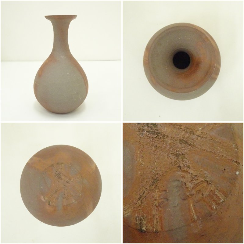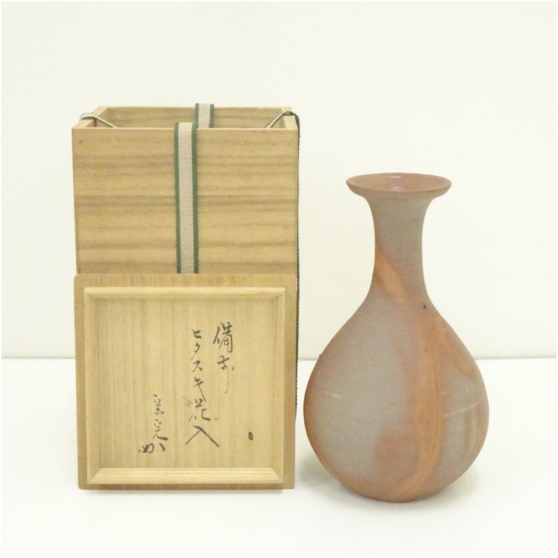 備前焼 火襷花入(堀内家十二代 宗完 兼中斎書付)(共箱) [13-250813b-009a]