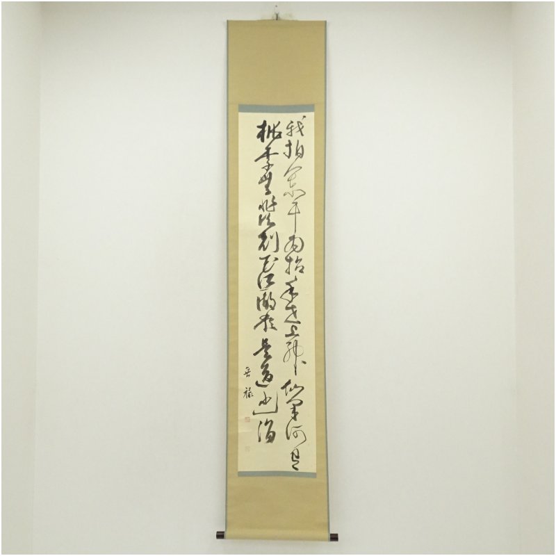 一茶庵 佃一輝(亦石)筆 「劉?黄鶴句」二行書 肉筆紙本掛軸(共箱) [12-250814c-002b]
