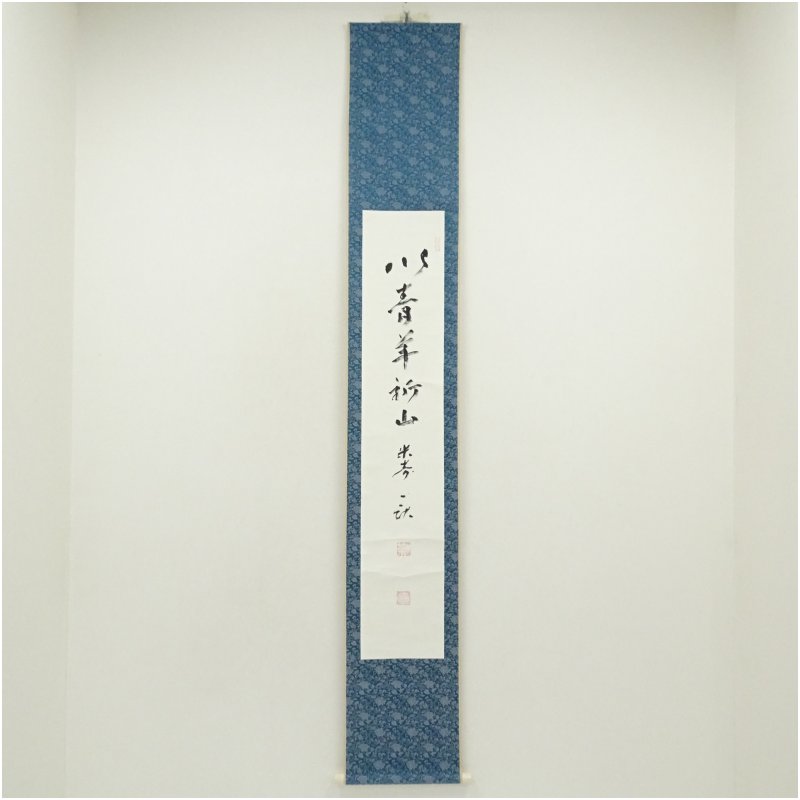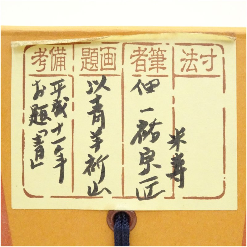一茶庵 佃一祐筆 「以青羊祈山」一行書 肉筆紙本掛軸(共箱) [12-250814c-007a]