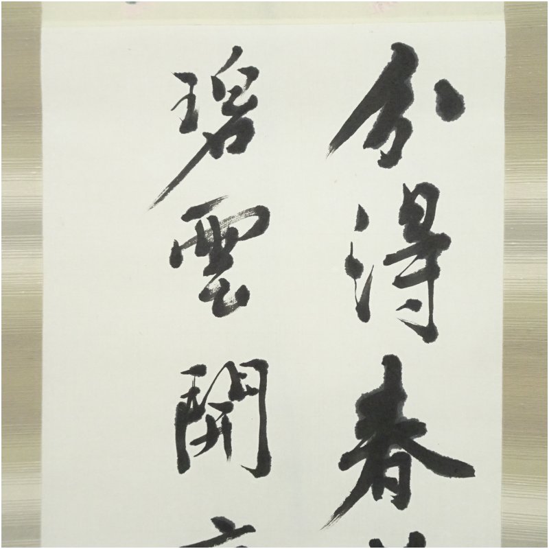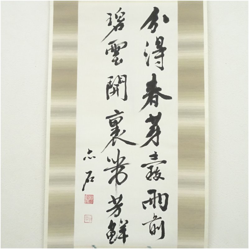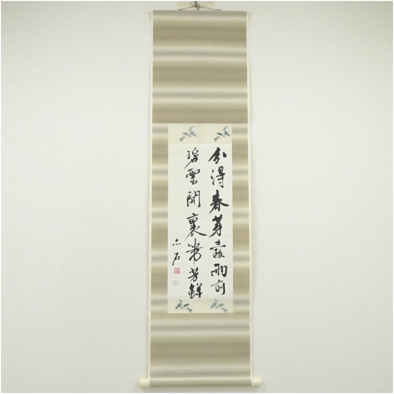 一茶庵 佃一輝(亦石)筆 「甫田茶詩句」二行書 肉筆紙本掛軸(共箱) [12-250814c-011a]